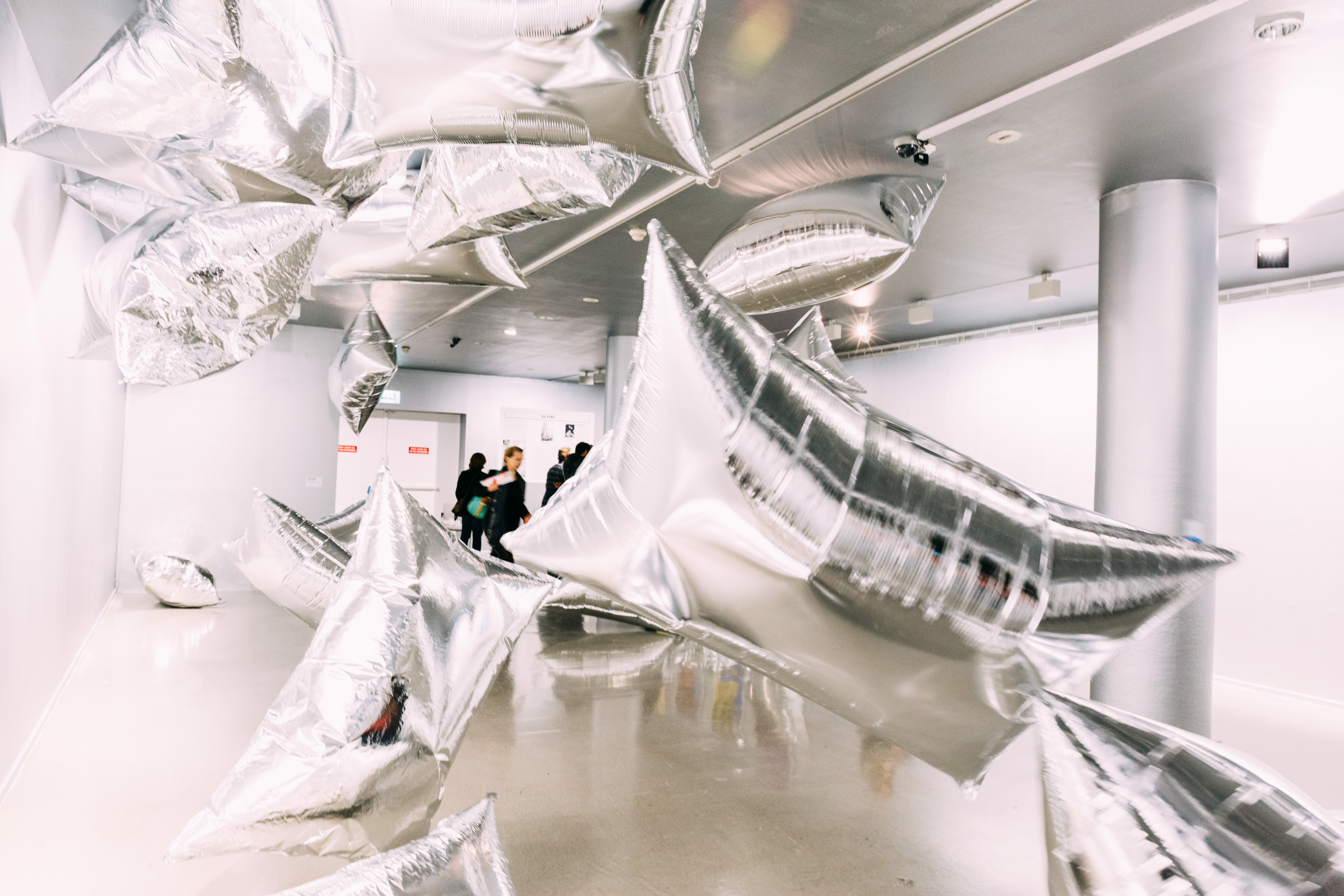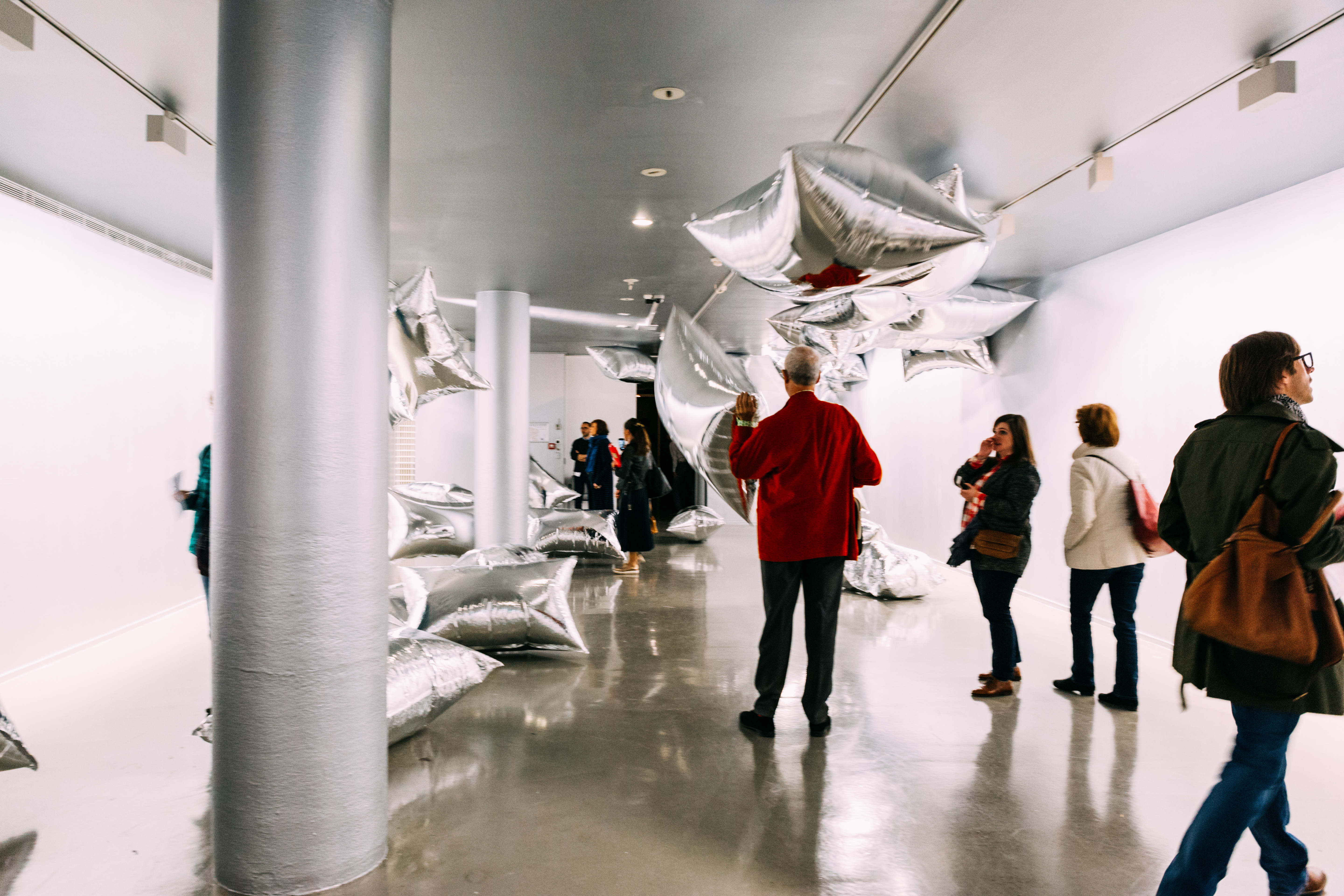 Este arte que podríamos llamar “psicodélico”, se hace presente además al entrar en la sala de «Sous silver clouds» (Sobre nubes plateadas), allí nos encontramos con almohadones plateados flotando por toda la habitación que están acompañados de una iluminación acorde. Con los efectos del viento de ventiladores, estas «nubes» nos envuelven y nos hacen viajar por el aire. Es en esta expresión que este gran artista quiere celebrar el fin del arte como objeto.