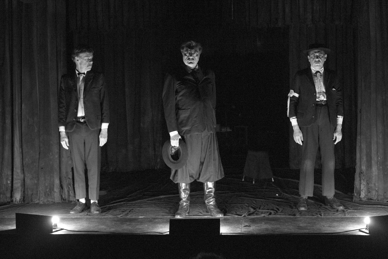 El elenco es magnífico, por un lado, Martínez Bel encarnando a Caín, con toques chaplinescos en su manejo del cuerpo y velocidad de respuesta en su contrapunto con Abel, interpretado por Claudio Da Passano, (asemejan a la dupla del “El Gordo y el Flaco)”. Abel con su humor inocente confrontado al sarcasmo y el cinismo de su hermano. Por otro lado, Claudio Rissi, Tatita, componiendo un personaje muy complejo y con una actuación ejemplar. Los tres actores sostienen una complicidad implícita con el público que “responde” con aplausos y carcajadas frente a los guiños de un texto filoso, perspicaz, con sutilezas de un intelecto cultivado alternando con un lenguaje popular y una poesía absolutamente refinada y excelsa.