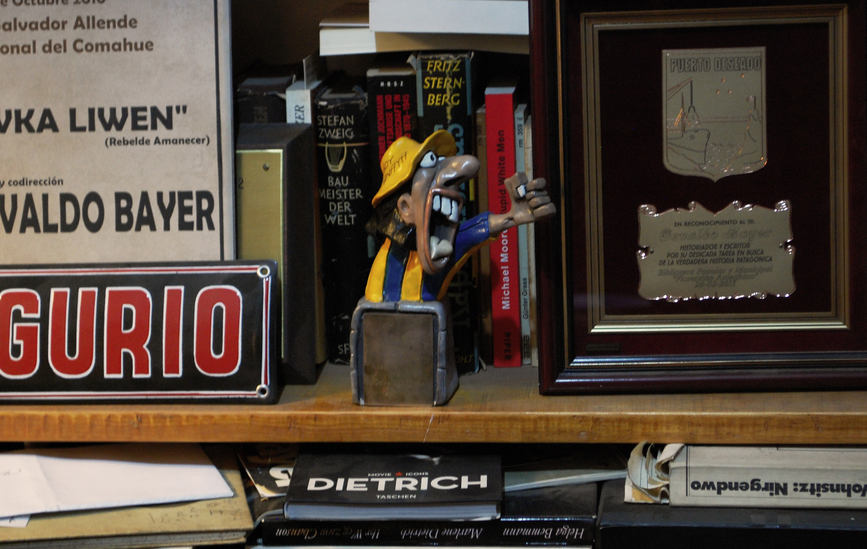 Si, con Mosquera armamos esta idea. Él quiso hacer esta articulación entre mi madre y Marlene. Mi padre me inculcó la lectura, y él estuvo en Río Gallegos cuando ocurrieron estos hechos, por eso me puse a investigar. En realidad, la mujer que más me marcó fue mi esposa, la que realmente me acompañó en mis locuras, o no locuras, como dedicar mi vida a la lucha sindical, e investigar siempre sobre los desconocidos, aquellos que han sido acallados por la historia. Por empezar, mi primer libro, Severino Di Giovanni, la persona más perseguida por el periodismo y la policía. Fue fusilado por el dictador Uriburu, que había hecho el golpe contra el presidente radical Irigoyen. Tomaron preso a Di Giovanni y le hacen un juicio los militares. Luego, lo fusilan. Recuerdo que cuando era adolescente, en los diarios, todos los años escribían: se cumple un año más de la muerte del asesino más peligroso de la historia argentina. Quise saber, investigué y tuve la suerte de dar con los compañeros de él, con sus escritos, con las cartas de amor, tuve muchos testigos…. También el juicio que le hicieron fue una vergüenza. Por ejemplo, esa bomba (señala lo que yo creía que era un adorno de bronce ubicado arriba de la mesa) era del grupo de Severino. Mi primer libro se llamó Severino Di Giovanni, el idealista de la violencia, porque aplicaba la violencia para llevar adelante sus teorías políticas del anarquismo.