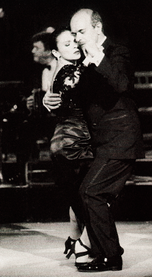 Si, todo lo aprendí siguiendo las máximas de mi padre. El me decía entre otras cosas, tenés que observar, todo está dado en el mundo, sólo hay que descubrirlo, o sea, des-cubrirlo, sacarle lo que lo cubre. Y así lo hice. Además, tenía mucho autocontrol de mi cuerpo, era dueño del espacio. Por eso al salir de bailar la tanda con esta señorita, en los tres tangos que bailé, mi cuerpo había hablado y mi mente viajado. Quizás hice un viaje astral… Me pareció fascinante estar tomado de otra persona y ser el suplemento y complemento de su hacer. A partir de ahí empecé a observar mucho, y llegué a bailar con una mujer que comprendía íntimamente todo, era el cuerpo perfecto para mí, el cuerpo de ese pibe, no con éste cuerpo, y me dije: ¡esto es otra cosa!. Nací en San Telmo, conocí a malevos de verdad, nunca quise ser un malevo, pero si entendí que el tango era más mío que el folclore. El tango es el proceso intelectual y artístico más logrado de nuestra argentinidad. Así que dejé todo por el tango. El tango está disparado a su destino final que es lo universal. Nosotros, los que hacemos tango en serio, sin apoyo de nadie estamos imponiendo el tango en el mundo. Es un sacrificio personal y convencemos a gente de otros lugares que hasta hacen sacrificios económicos para venir a aprender acá y hasta hacer festivales y divulgarlo. Eso hacen los alemanes, los franceses, los españoles, los japoneses, cosa que debería hacer el gobierno. Y esto es histórico porque es cosa de negros. ¡Pero si nosotros somos negros! ¡somos cabecitas! La sangre intelectual lo ve como cosa que inventan los negros que no saben ni hablar, pero el vox populi es el vox dei. Hay una soberbia de aquellos que no salen de la General Paz. A mi me recibió Reagan en la Casa Blanca, lo mismo Alfonsín me abrió sus puertas, doy clases en la Sorbona y hablo como para ustedes. Nunca preparo nada, siempre improviso. Ahora hay una Universidad en Miami, en La Florida y somos Doctores Honoris Causa, Gloria y yo. Y acá cuando empezó la Universidad las autoridades de aquella época no querían que yo hablara, pensaban que bailar era moverse como los monos. Ese proyecto lo tenía desde hacía mucho, hasta el cuerpo docente y los programas tenía preparado. Hace veinte y cuatro años atrás, un señor Yanoni mandado por Filmus, se contactó y se entero que quería hacer una Universidad. El tipo no podía creer los programas que tenía pero eran el fruto de años de trabajo.