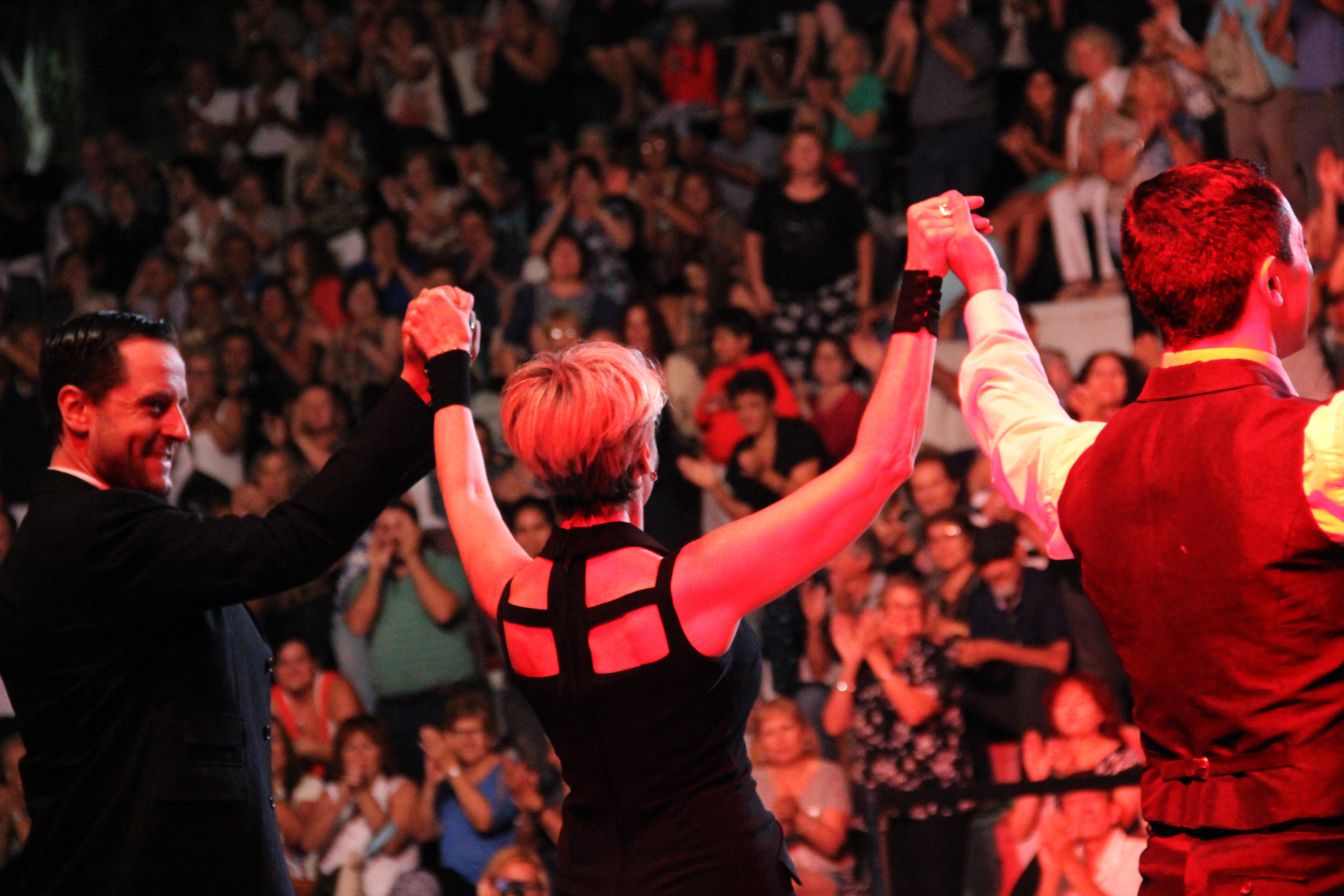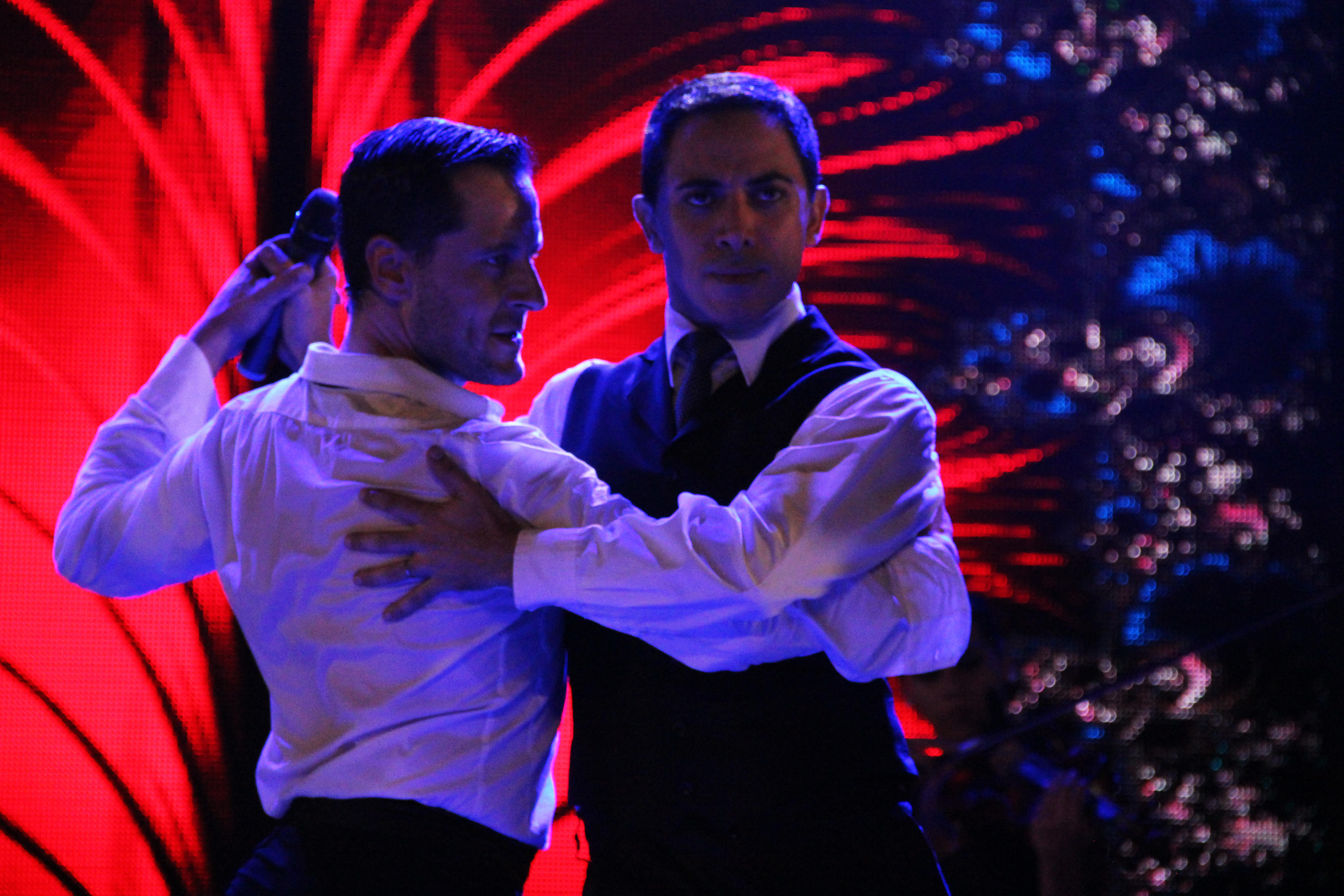 Lajad es la voz cantante de este show, no sólo porque canta con una voz muy potente y con muchos matices emocionales, sino porque hipnotiza a su público con su carisma y con dotes actorales interesantes. Tiene una presencia y una fuerza escénica muy potente. Cada canción es interpretada tanto por Lajad como por Sandra Guida que con su metal maravilloso de voz, reboza de sensualidad. Si a esto le sumamos el atractivo singular que ejerce Colavita en su despliegue escénico, tanto bailando solo como con sus partenaires, podemos afirmar que es un espectáculo brillante, donde el trío se luce con mucho glamour.