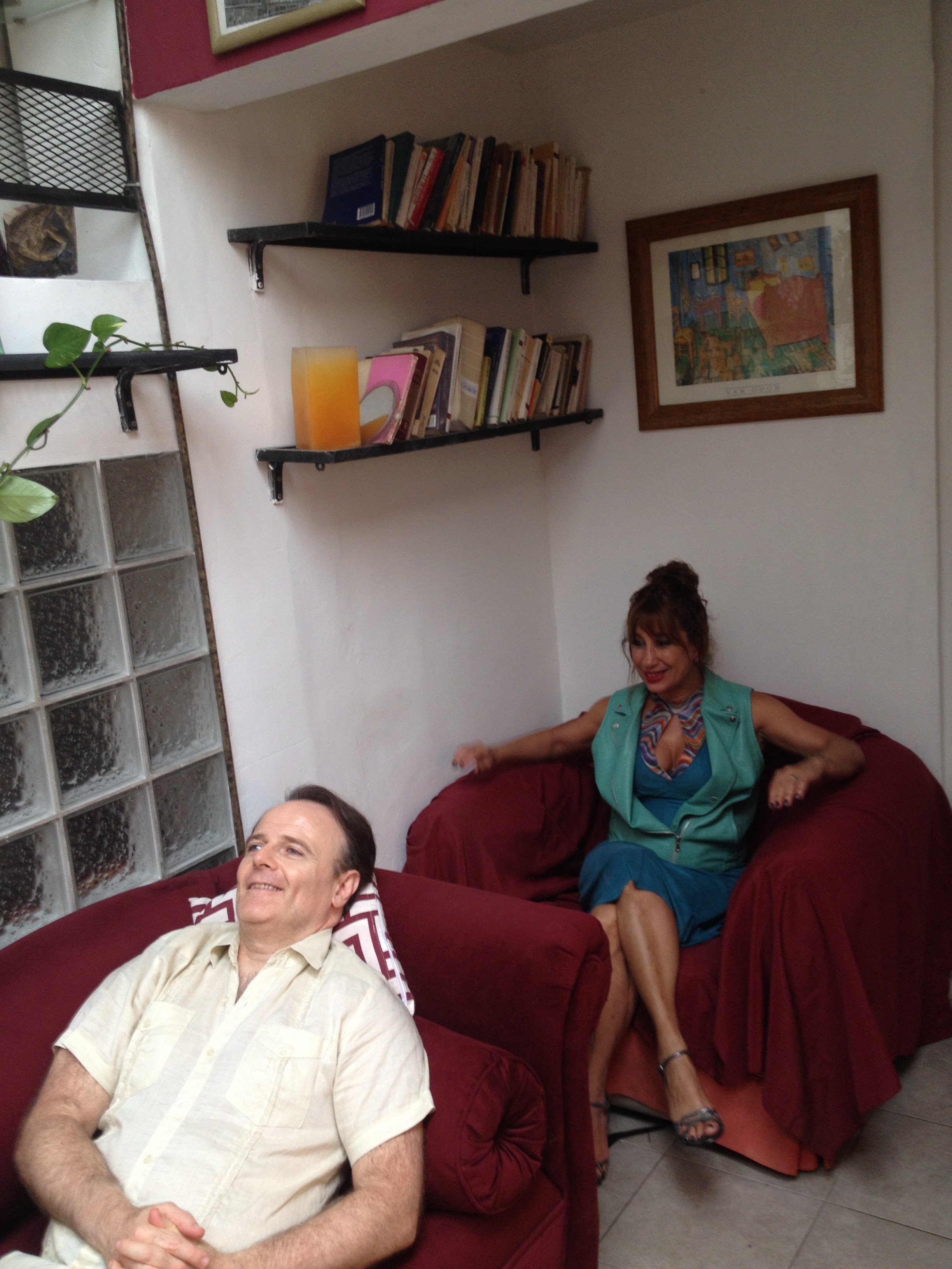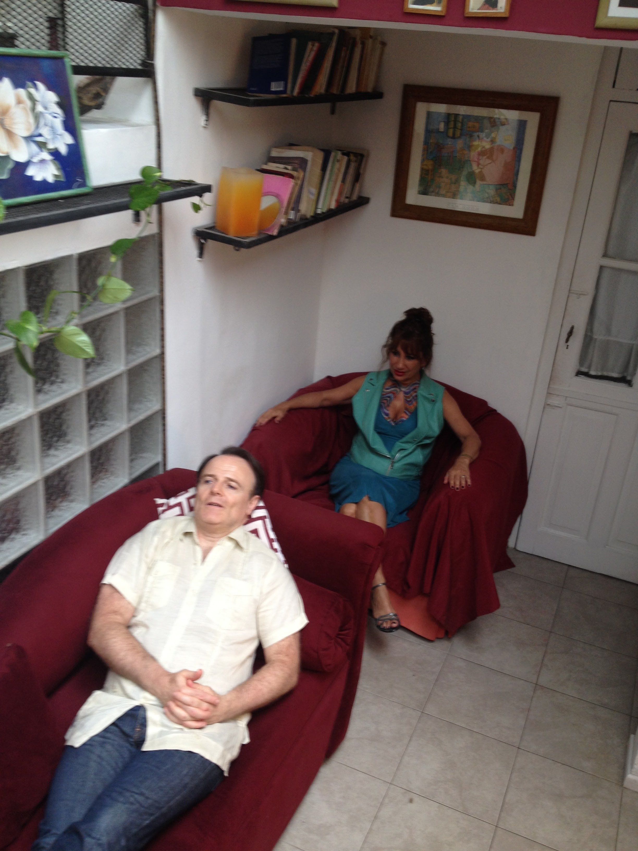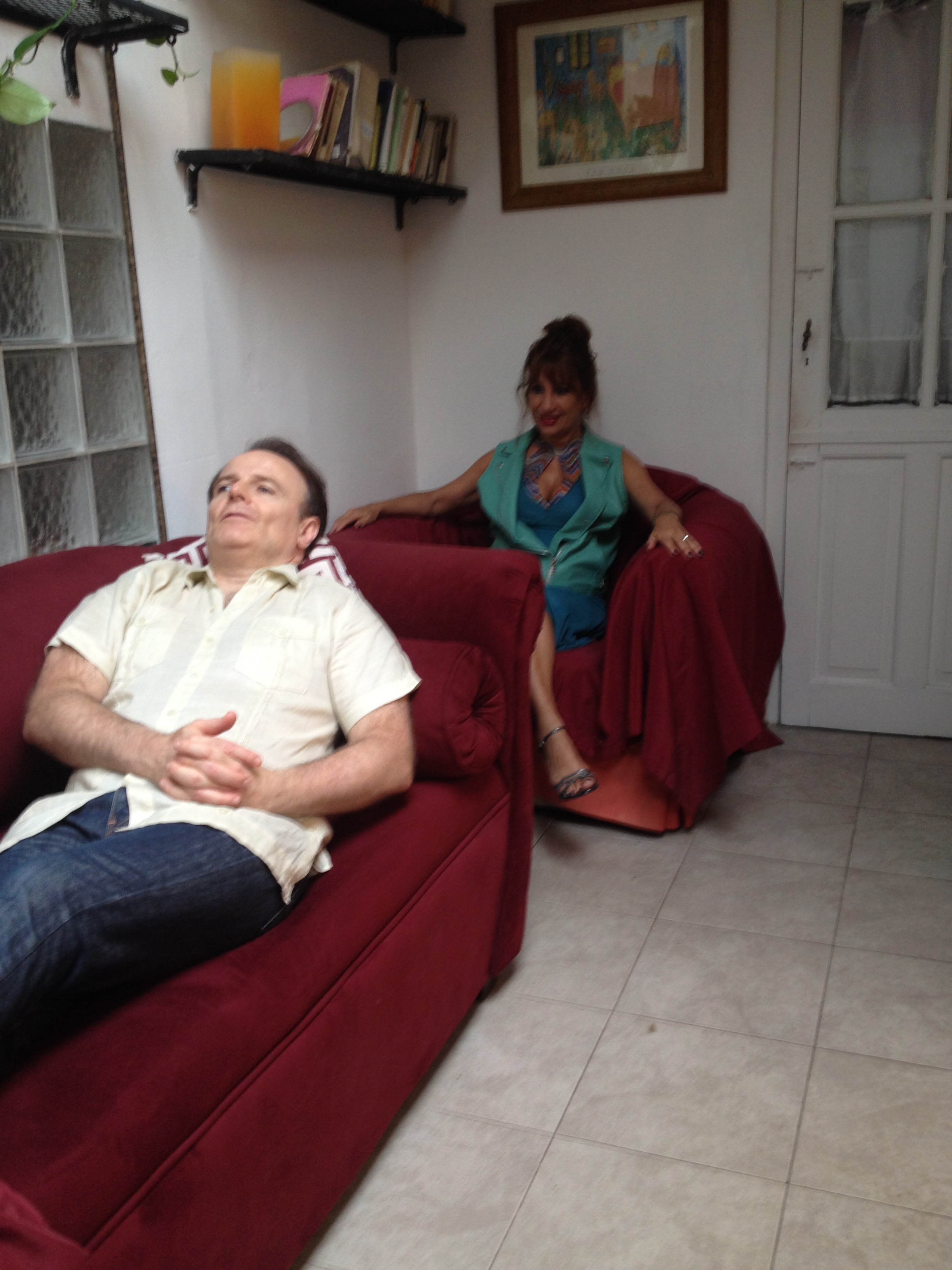 No, nunca fui muy teórico (risas). Un profesor me decía que no necesitaba leer los libros porque yo hacía lo que los libros decían (tose)– Tengo que pasar al baño, porque por un trabajo de fonoaudiología tengo que hidratarme mucho. (Al salir del baño, vuelve a recostarse en el diván). Vos que sos psicóloga y te gusta tanto la actuación, tenés que leer algunos de esos libros como “Sacáte la careta y ponete el antifaz” de Ure, porque hace una conjugación muy interesante de lo que es el trabajo del actor. El decía una frase de la que me apropié: “los actores son personas cuando actúan, cuando no actúan no son personas, son actores que no actúan” (risas) Es muy cruel, pero es muy cierta, y uno que hace muchos años que actúa, y ver comportamientos de actores. Yo no tuve muchos períodos largos que no actué, y cuando los hubo, siempre lo viví con una sensación de abstinencia, por haber sido fumador y haber dejado, esa sensación la conozco bien. De a poco, me fui armando para que esos períodos que no actúo fuesen muy cortos. La etapa que recuerdo más larga fue de dos o tres meses sin actuar, y la más feliz, fue cuando nació mi primer hijo, cuando nació Lola, ya no recuerdo tener períodos de tanto tiempo. Con mi primer hijo, no lo sentí como un peso, tenía un resguardo de dinero, eso ayudó.