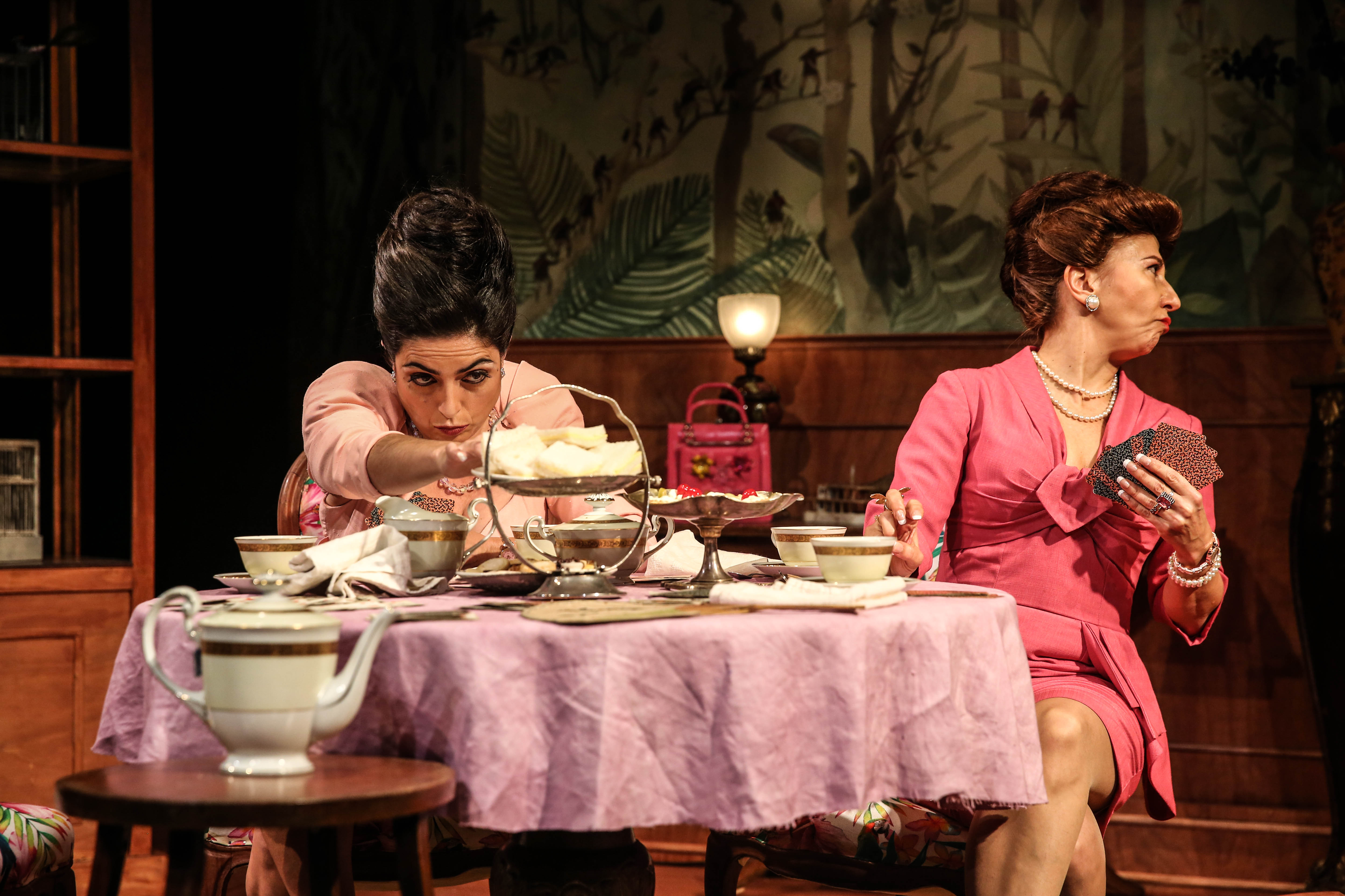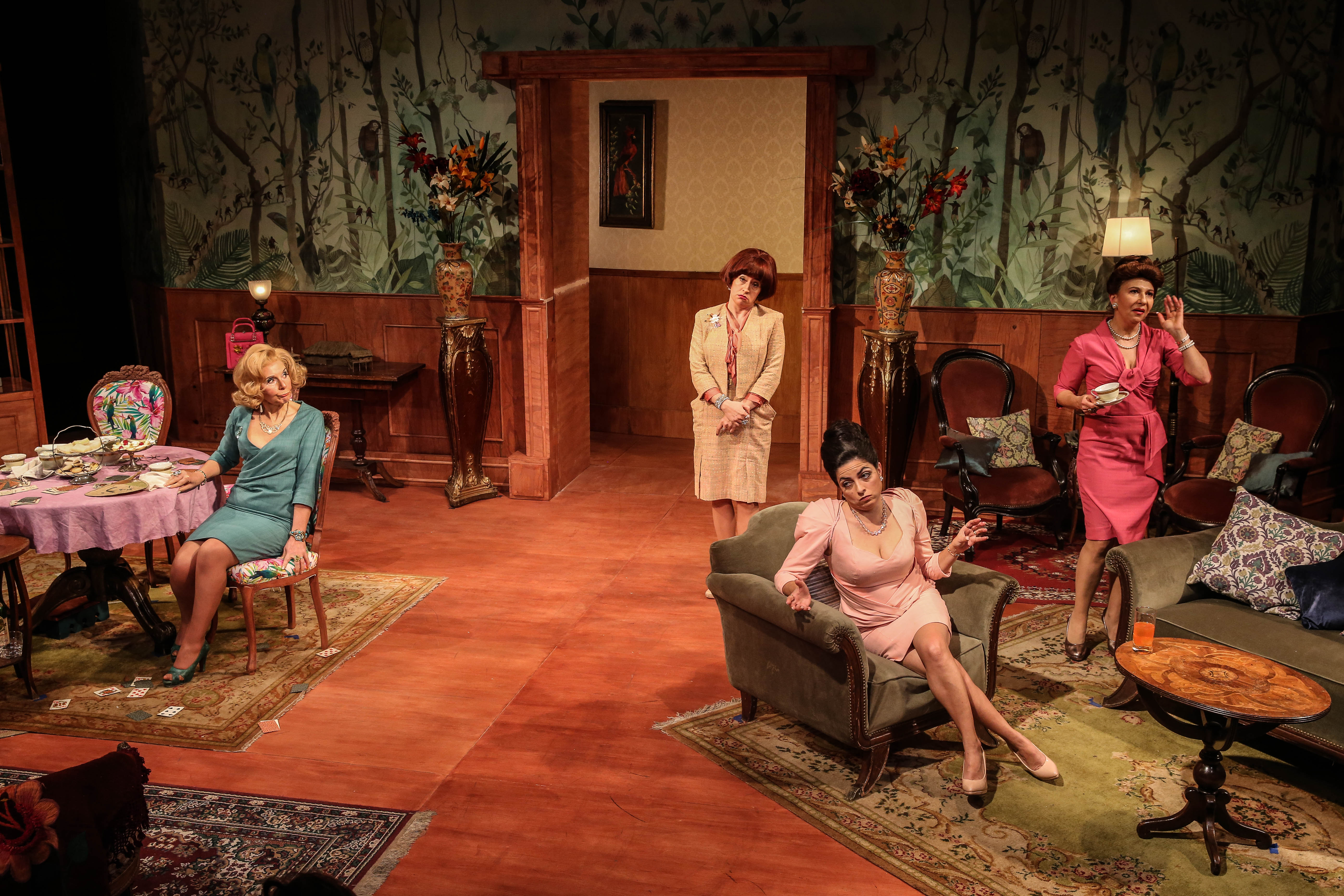 En el comienzo, una suerte de imploración a la benevolencia por el mensaje dirigido al público que va a comenzar a conocer la historia a la manera de las comedias latinas, nos introduce ya en el tono y estilo de la obra, el personaje nos adelanta un poco de qué va ir la historia. La acentuación de los caracteres dislocados desde sus comportamientos y sus vestuarios nos ubican frente a un universo exacerbado donde casi no hay respiro, de una clase que presenta desde el vamos todas las taras y clichés de cuatro arpías de existencias nimias. No se ahorran aquí, adjetivos denigratorios ni gestualidades varias. El eje es el ridículo en la construcción de una formalidad que va, en todo el devenir de la obra, por delante del texto, como si la obra fuera más el esfuerzo de lo chillón y de lo desaforado y un poco más acá estuviera el texto literario de base, que rico en sí mismo, con ingenio y ocurrencia parece dejar de lado (porque no se quiso o no se pudo) una construcción más sólida, más allá de la propuesta primera, que en este caso deviene en divertimento.