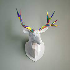 Le papier doit être cartonné, je recommande un grammage entre 200 & 300 GSM. Moi, j’utilise un papier de 260 GSM qui convient parfaitement pour ce type de création. Pour un grand modèle, je recommanderai plutôt un grammage d’au moins 240 GSM. Pour un petit modèle, un grammage plus fin peut convenir. J’ai vu des sculptures assemblées avec du papier de 160 GSM avec un résultat très correct. En revanche, du papier standard de bureau (75 / 80 GSM) ne conviendra pas car il gondolera. En termes de texture, j’utilise un papier lisse (couché) avec une légère brillance. Le papier photo ne conviendra pas car la colle n’adhérera pas. Il est également possible d’utiliser du papier de couleur, voir du papier à motif, l’essentiel étant qu’il soit épais. Pour ceux qui s’intéressent à de telles sculptures, dites-nous quelle serait la chose la plus difficile à apprendre. Pour moi, l’assemblage n’est pas la phase la plus compliquée. C’est la personnalisation qui est pour moi plus longue. Par exemple, une fois une sculpture terminée, c’est à vous de décider comment la décorer. Certains utiliseront du papier de couleur, l’assemblage sera donc la phase finale. D’autres pourront la peindre d’une seule couleur ou utiliser une peinture en spray (rien qu’ici il y a de nombreuses options : spray effet pierre, spray métallisée…). Ou encore, comme ce que j’ai fait pour plusieurs modèles, vous pourrez peindre ou coloriez chaque facette d’une couleur différente. Il y a ici plusieurs techniques avec plusieurs qualités de rendue. La plus simple sera de colorier chaque facette avec des crayons feutres. Sinon peindre la sculpture en blanc puis colorier chaque facette avec des marqueurs de couleur. Ou encore peindre chaque facette avec des peintures de couleur différentes. Chaque technique de personnalisation offre un rendu différent mais l’objectif est le même : avoir un objet unique.