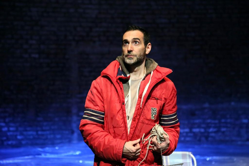 Sereno y preparándose para una tarde de pesca en solitario, Luis se va abriendo poco a poco para confesarnos celos, anhelos y deseos, entre otros sentimientos. Nos habla en reiteradas oportunidades de su hermano Rubén y todo lo que representa para él en su vida. Indaga mucho sobre el complejo de inferioridad que Luis tiene ante Rubén, ese hermano “langa” que se las sabe todas y que le hace hervir la sangre a Luis. La obra no tiene baches, el personaje que interpreta Paredes recorre todo el galpón del Espacio Callejón y lo hace completamente propio. Cabe destacar el preciso y bien logrado efecto sonoro y lumínico que “Cazón” logra pescar al espectador como una presa más pero lo hace con hondura y desde lo Inconsciente. Esta obra tiene la capacidad de sorprendernos con risas y llantos. Para cuando las luces se prenden ya estamos pescados por la maravillosa performance de Luis. Una obra que destaca la relación fraterna en todo su esplendor.