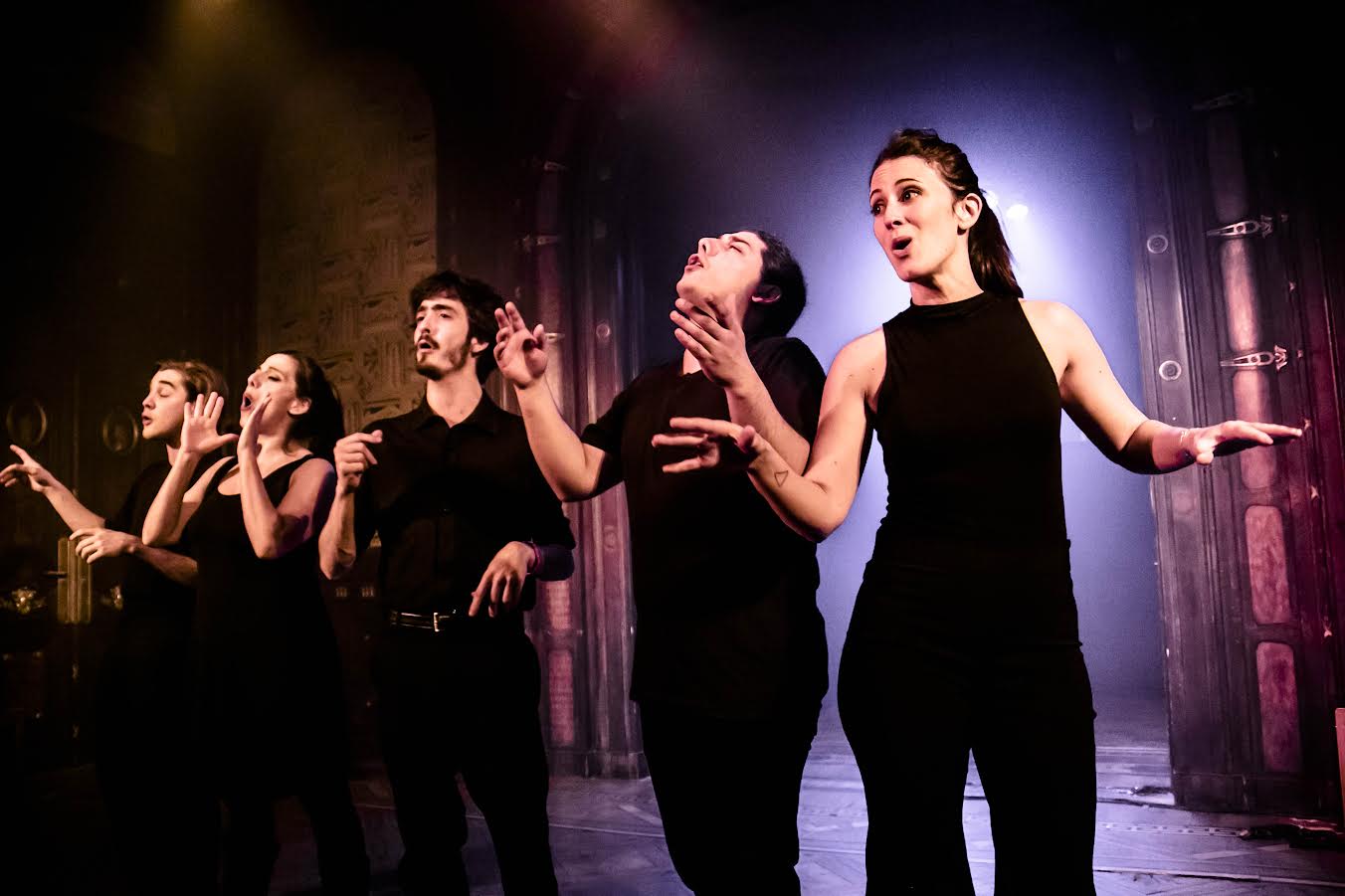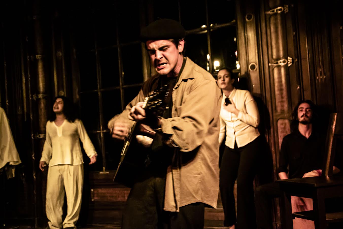 Lo mismo nos ocurre días después al presenciar la impecable obra “De eso no se canta” en el espacio Gargantúa. Con músicos en escena que acompañan a los cinco intérpretes. A diferencia de la obra mencionada anteriormente, ésta es un viaje por todo el mundo que habla sobre temas socio – políticos y aborda sobre todo la cuestión álgida de la esclavitud norteamericana para con los afroamericanos, entrecruzando temas como el cordobazo y los desaparecidos por la dictadura en Argentina. Las interpretaciones realmente son creíbles y llegan a despertar piel de gallina. Himnos como “Bella Ciao”, “Strange fruit” “La marcha de la bronca”, son algunas de las tantas canciones que oímos y nos hace concientizar sobre todos estos hechos históricos que se encontraban prohibidos en algún momento, y que de una manera teatral, se lo desentierra.