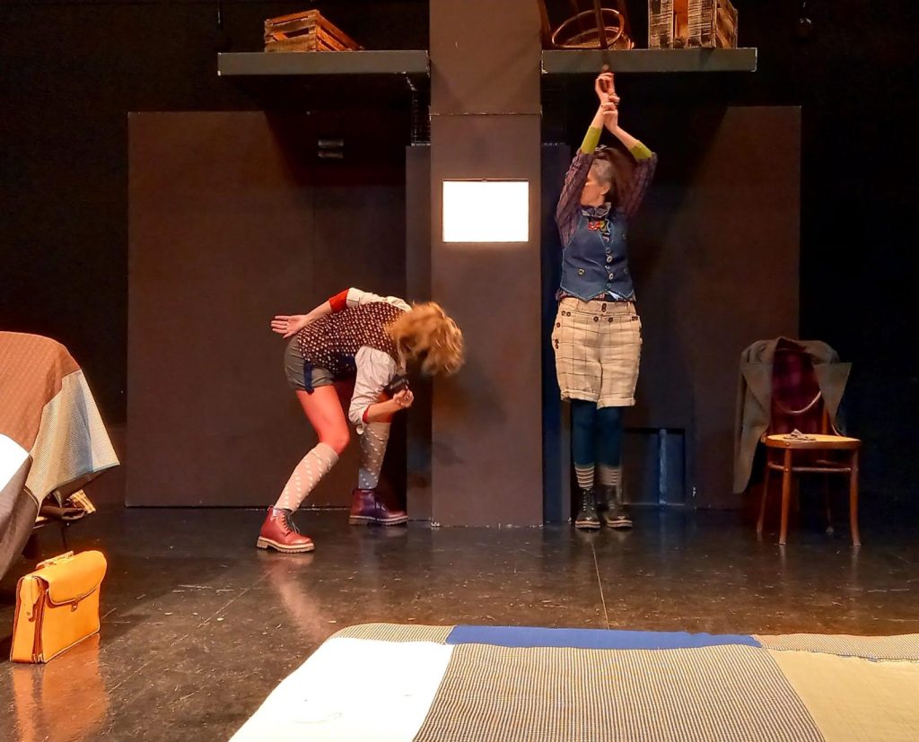 Es una clásica comedia de lo absurdo, un diálogo que no es realmente el esperado para la situación de los personajes. Un diálogo banal, que brinda implícitamente información para entender el contexto. Hasta que llega el elemento perturbador y la obra cambia radicalmente. Dos personajes completamente distintos, el típico contraste del personaje más serio, rígido con el personaje más inquieto, desconcentrado. Una química de claro disfrute y entendimiento por parte de las dos actrices que los encarnan en esta ocasión. Tanto aquí como en la previa obra de Pinter, Alejandro optó por cambiar el sexo de los personajes y que mujeres interpreten personajes masculinos. Está hecho magistralmente y con tal naturalidad que para quién no sepa que los personajes son originalmente dos hombres este hecho pasa desapercibido.