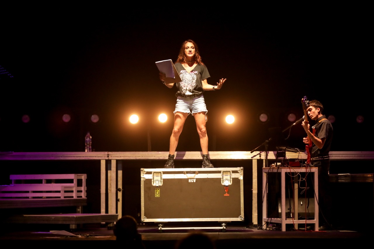 Asistir al convivio que caracteriza el evento artístico teatral y que la sala de la Biblioteca Nacional al aire libre no tenga un asiento vacío, ya es comenzar a vibrar entre los espectadores este encuentro por anticipado con Eleonora Wexler, lo que llamamos la previa a que su figura llegue a iluminar el escenario. Y cuando eso ocurre, la jugada maestra es que la actriz se presente con su nombre, (y no como la autora de la obra) ya que marca el estado de verdad en la ficción que impone su impecable composición, poniendo en duda si habla la actriz o si habla Despentes. Al tiempo que se percibe como si la actriz desnudara su verdad, encarna todo el espíritu de la autora con su ironía y humor a la francesa, y por supuesto, hace cuerpo el pensamiento revolucionario logrando conmover desde lo más visceral. Esta puesta en escena de la mano de Fiorillo, hace que todos, pero todos los objetos de la escenografía cobren teatralidad. Y un dato nada menor es que la actriz está acompañada por la musicalización en vivo de Pol y esta figura masculina es per se interesante, y simboliza la inclusión que la autora de La teoría de King Kong hace con los hombres cuando los invita a participar del feminismo y de la emancipación masculina. Y lo dice así “…escribo desde la fealdad y para las feas, las viejas, las camioneras, las frígidas, las mal cogidas, las incogibles, las histéricas, las taradas, todas las excluidas del mercado de la buena chica pero también para los hombres que no tienen ganas de proteger, para los que querrían hacerlo pero no saben cómo, los que no son ambiciosos, ni competitivos, ni la tienen grande. (…) Como chica soy más bien King Kong que Kate Moss (…) no me disculpo de nada ni vengo a quejarme. No cambiaría mi lugar por ningún otro, porque ser Virginie Despentes me parece un asunto más interesante que ningún otro…”. Esta última afirmación es lo que se transita en toda la obra: ¡qué mujeres interesantes somos todas y cada una cuando sentimos la libertad de ser quienes somos!