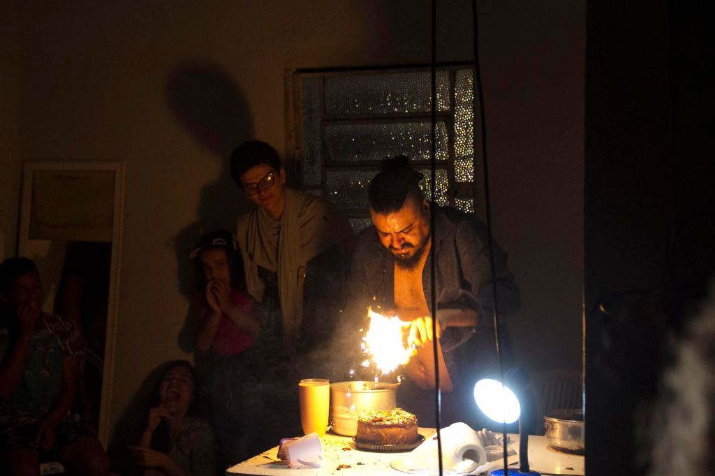 Receta para hacer un monstruo nos envuelve en su obra casi sin avisarnos que ha comenzado la función, con un hombre ansioso por hacernos entrar a su hogar y volvernos partícipes de un cumpleaños que, paradójicamente, aún no ha comenzado. Siendo nosotros los invitados, pero habiendo llegado una hora antes, somos los responsables de hacer que el festejo cumpla con todos los requisitos para pasar un momento agradable, mientras el cumplañero, lleno de polvo en los pies y sucio de pisar baldosas húmedas de una casa antigua, cuenta con un profundo dolor y violencia intermitente, todos los dolores que ha soportado y que, de algún modo, justifican por qué hoy día es un monstruo.