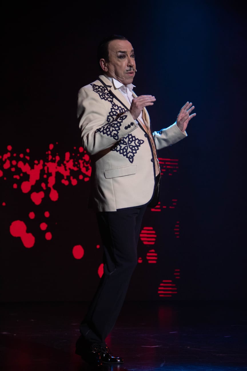Baila sublimes coreografías junto a bailarines versátiles y magníficos, y no sólo se destaca él sino que hace brillar a todos y cada uno. Nos lleva por décadas de ritmos con talentosas y emotivas voces en sus colores y tonalidades con un grupo de cantantes que enaltecen las mismísimas versiones originales.