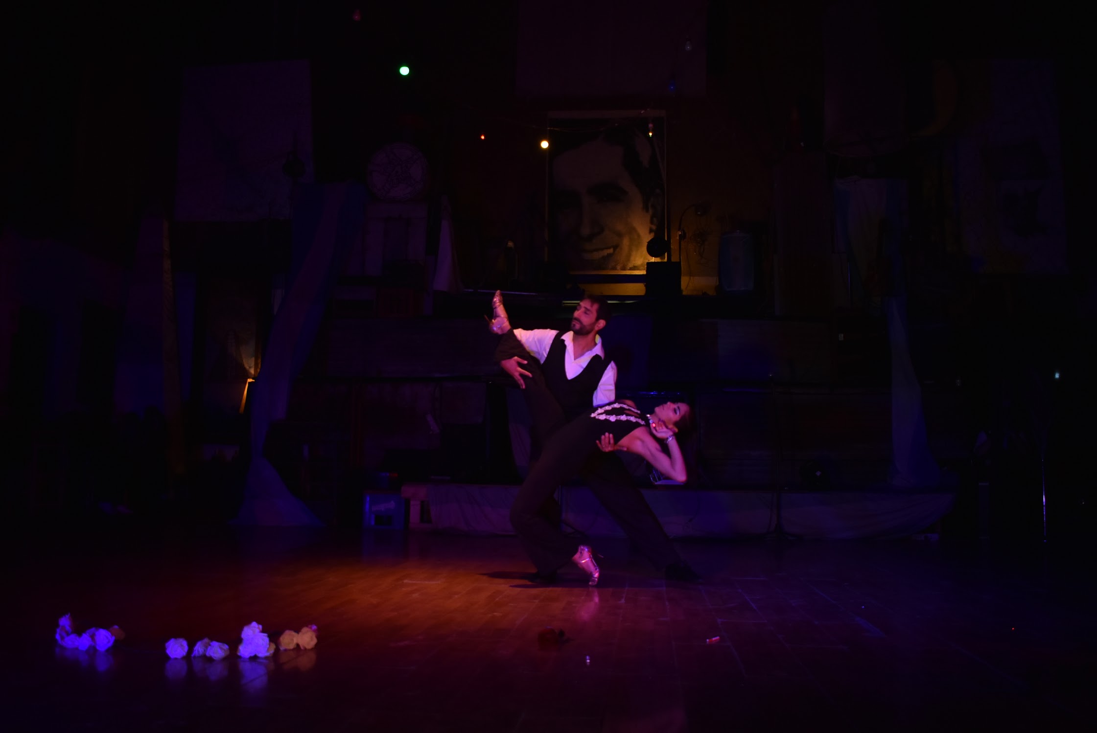 Carina: la obra aborda temas que nos tocaron en nuestras historias personales y en algún momento las teníamos que trabajar. El tema “El amor desolado”, lo tocaba a Hernán desde su historia de vida familiar y a mí también. En mi casa se escucha tango todo el tiempo, yo lo detestaba porque era chiquita, eran los domingos de tango, íbamos a lugares de cena show. Recuerdo las reuniones que estaban todos los cantantes, toda mi familia, yo me quedaba dormida en la mesa porque estaba aburrida pero tocaban mucho ese tema y se escuchaba mucho a Jorge Falcón y la canción El amor desolado. Nosotros lo venimos planeando desde hace un montón tiempo, había quedado ahí y ahora por suerte pudimos ponerlo en escena gracias a la Catedral que post-pandemia nos convocó.