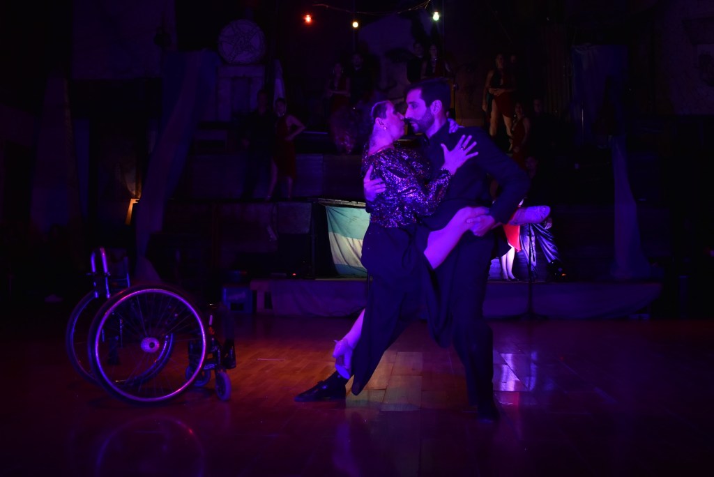 Carina: Cuando estudiaba Psicología, hice una pasantía en un centro de día que trabajamos con personas con discapacidad, eso me dio una importante experiencia. Nosotros hicimos un proyecto de tango, sabemos que se comprobó que es bueno en enfermedades de Parkinson, entre otras, tenemos muy en claro que todo el mundo puede bailar tango cualquiera puede hacerlo y que es verdaderamente inclusivo. El tango es inclusivo.