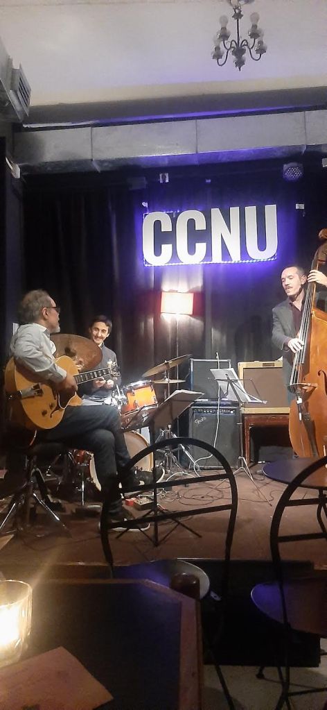 El trío construyó sobre composiciones originales y algunos standards, un sonido consistente y representativo y nos convidó a esa ceremonia a quienes estábamos escuchando. En el escenario del Centro Cultural Nueva Uriarte, en el corazón de Palermo, con amigues y una bebida, una noche con un halo especial: el de una música que conmueve y potencia lo vital de cada uno.