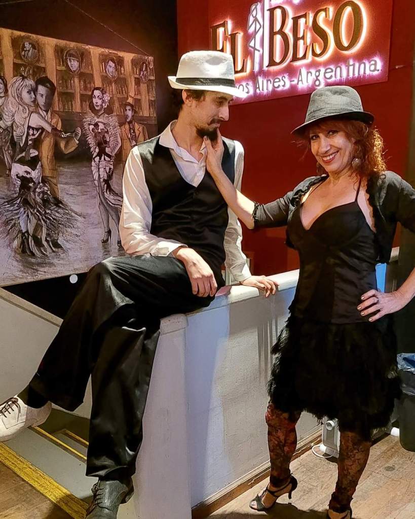 El sábado 20 de agosto a las 15 h se presentaron en la emblemática Milonga porteña El beso, Tango Camargo, dos personajes de la obra Escenas de tango de la Compañía HyC tango dirección HyC tango, maestros que están hace 2 meses de gira por Europa. Catalina y Dartagnan están encarnados por nuestra directora Dra Raquel Tesone/ Rachel Revart y Ariel Sojnoczki. Fragmento de una obra que lleva más de 40 funciones todos los miércoles 21 h en milonga icono de la bohemia tanguera La Catedral Club, que al igual que El beso, fue declarada sitio de interés cultural de la ciudad de Buenos Aires. Una invitada de lujo coronó con su presencia está performance tanguera y nos regala está nota en exclusiva para El Inconsciente. Con ustedes: Mónica Peri, creadora junto a Rodolfo Dinzel del Psicotango, quien ha publicado numerosos artículos, libros y da conferencias y seminarios difundiendo el tango por el mundo.