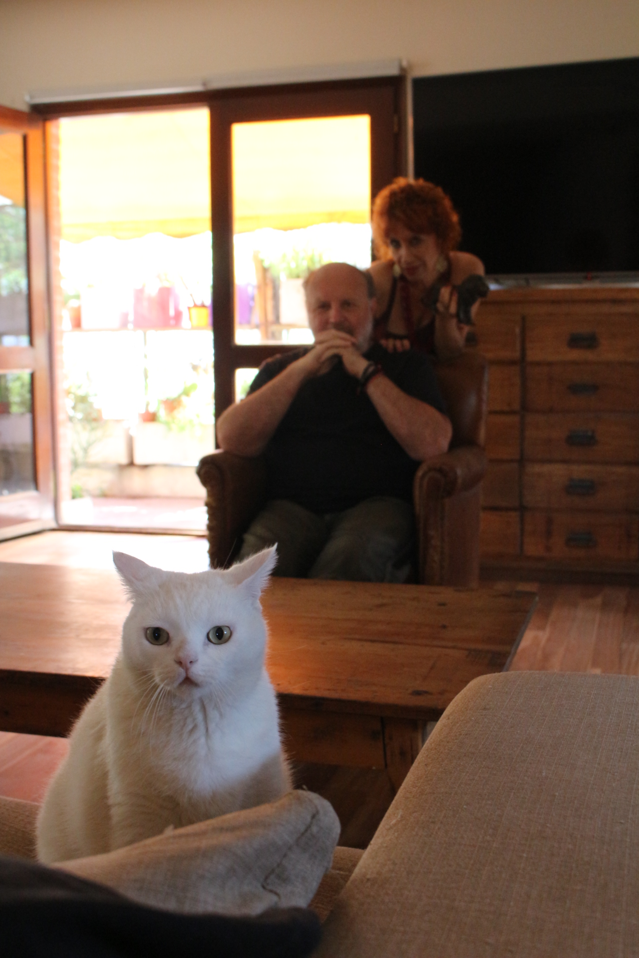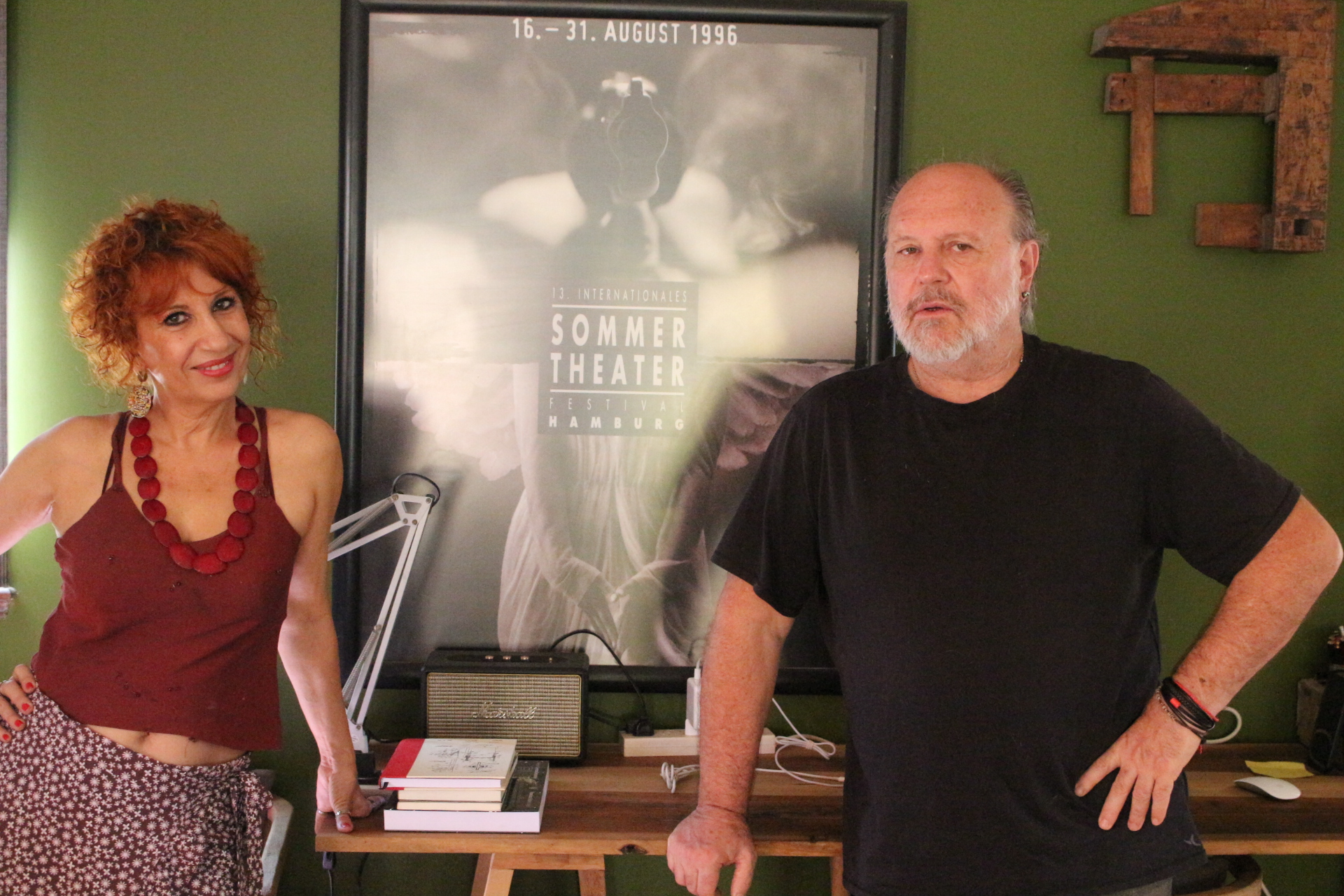 Tal como lo hace con sus obras, Daniel Veronese logra llevarnos a lugares inesperados con una total libertad de asociaciones libres. La sensación de confianza habita el espacio “entre dos”, ya desde el primer Al diván del año 2016 en su Estudio, y durante todas las charlas post-función de sus obras de teatro. Detrás de ese porte sobrio, se perfila una carismática ternura que le otorga una suerte de seducción natural. Desde que abre la puerta, en short, remera y descalzo, y se presta a entablar un diálogo mientras Heriberto Ruiz toma las fotos, va armado un espacio escénico. Su hogar es toda una extraordinaria puesta en escena completa: objetos de arte, fotografías, cuadros, espejos, guardarropa con cartel, muchísima luz natural y plantas, bancos, mucha madera, y lo más dulce, Iodí, su gato. Allí es donde todo parece estar ubicado en el lugar preciso para instalarse confortablemente en la escena que él nos propone. En ese sendero errático, sentí que me tomaba la mano y podía caminar con él, hacía donde él desee “dirigirme”. ¿Se deben sentir así los actores? Si, me respondí, y recordé el final de Al diván María Onetto, su actriz fetiche (esta entrevista fue antes de su partida, aún me cuesta hasta escribir que María no está con nosotros). Copio para hacerle honor a ambos, y para seguir el rumbo de mis asociaciones: