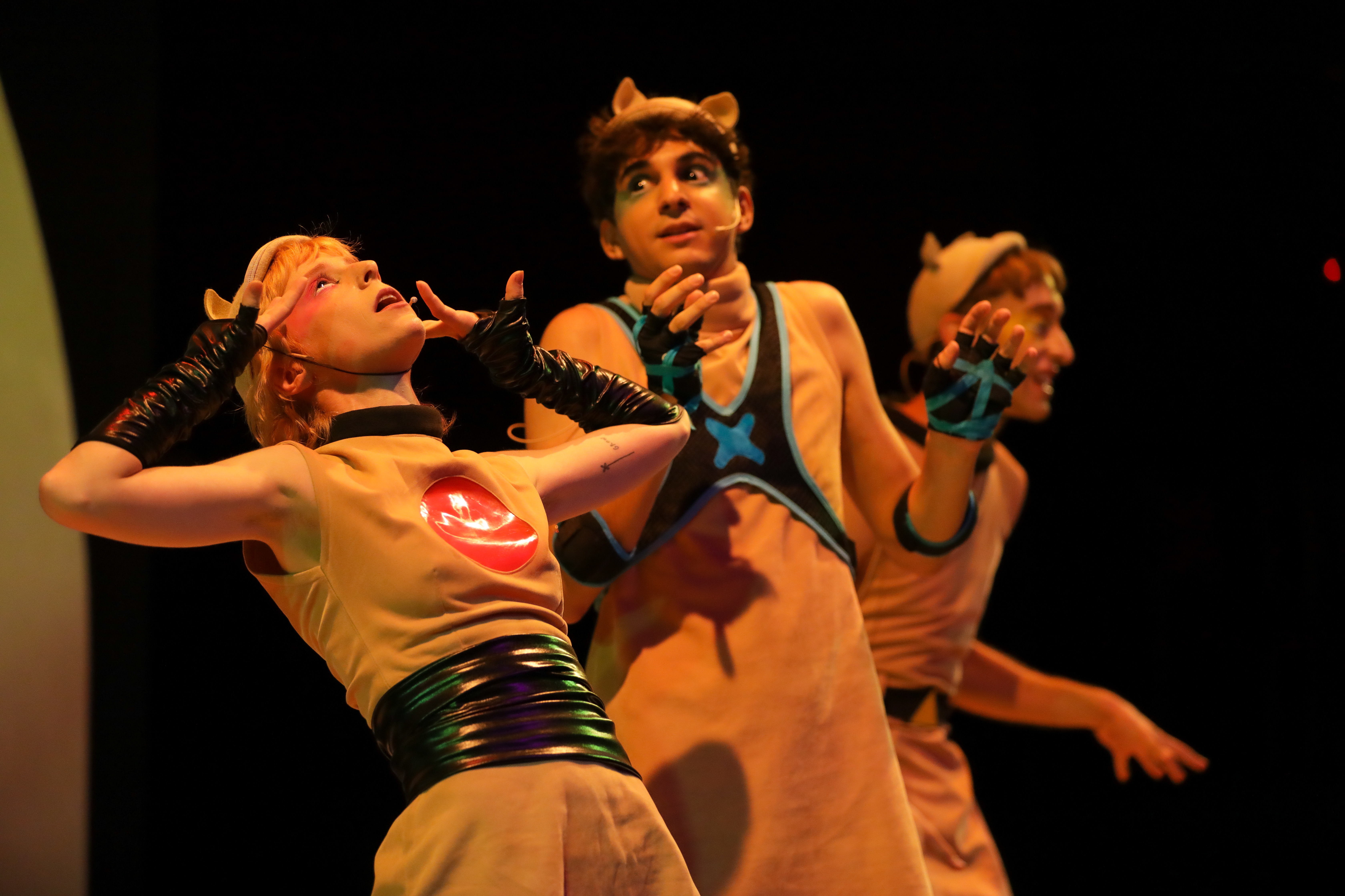 Es remarcable la capacidad de dicción de nuestros actores y actriz. El yo desglosado en tres intérpretes se vehiculiza en una narración que estalla en el hiper-lenguaje. ¿Será un síntoma de la época de la nueva peste en la que necesitamos tantas palabras para elaborar los conflictos? Sea como sea, sigamos creando nuevos sentidos. Y por un rato que dure para siempre, volemos al sol en el potrillo unicornio hacia la luz cargada de los brotes del crepúsculo.