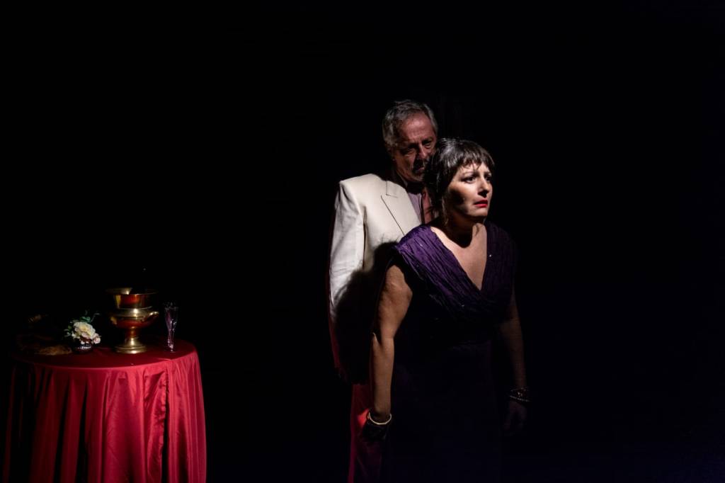 Complots, parricidio, camarillas y traiciones se sirven en la mesa del banquete shakespeareano que es esta obra en la que el contraste constante entre enunciados dramáticos del estilo tradicional y los diálogos coloquiales porteños, danza constante en el escenario.