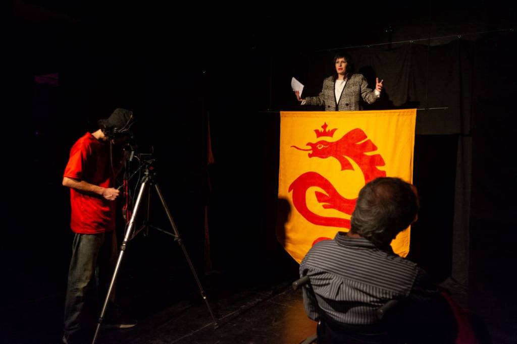Luego de la función tuve la oportunidad de conversar con Alejandro Rodas, director de esta pieza y conocer algunos detalles del proceso que dio por resultado esta obra. La iniciativa nace de A. Tamburri y L. Aramburu quienes convocan al director con lo que inicia una búsqueda que tras recorrer algunas obras históricas del cine y el teatro desemboca en la clásica (y presuntamente maldita según la tradición dramática) Macbeth de Shakespeare. A través de las funciones la dramaturgia fue mutando como fruto del exhaustivo trabajo de incorporar en los ensayos algunos errores y sorpresas ocurridos fuera de todo plan en diferentes presentaciones. Alejandro me contó sobre el trabajoso camino de «ensayar el error» hasta que salga natural como si fuera la primera vez.