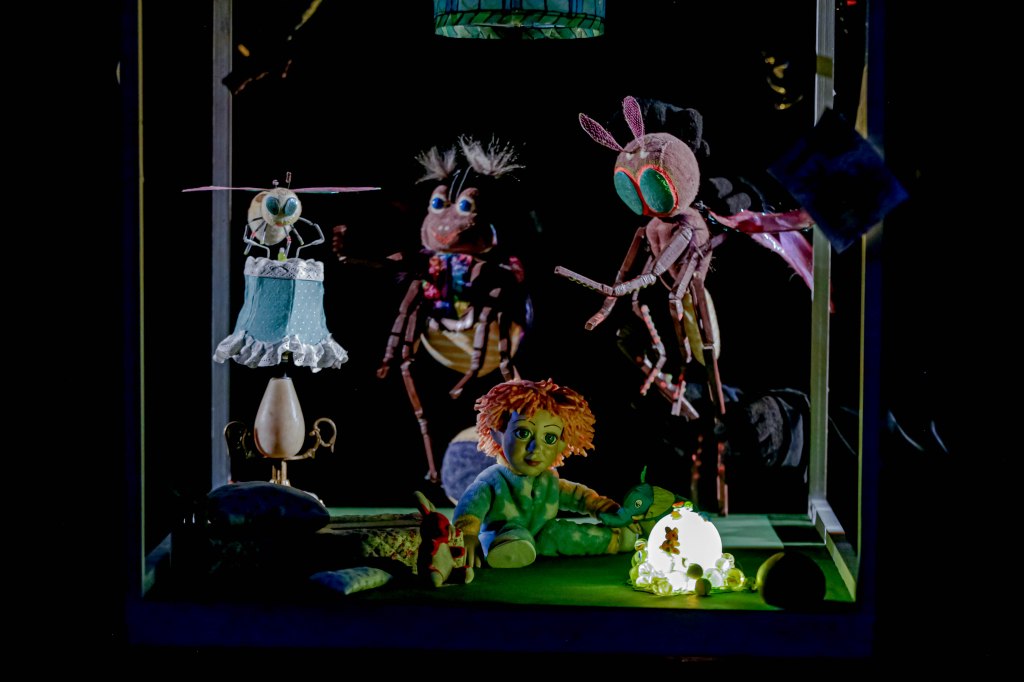 Esta puesta muy atinada para niños pequeños, con maravillosos títeres y músicos en escena tiene, como siempre, varias claves de lectura. Por un lado, una estética que nos remite al cuadro de Van Gogh, La noche estrellada sobre el Ródano; por otro, la pregunta acerca de los miedos de los niños: no se trata de romantizarlos ni de ponerle colores sino de construir modos de acompañamiento que alivien el malestar infantil. Los miedos varían y jamás se enfrentan sin ayuda.