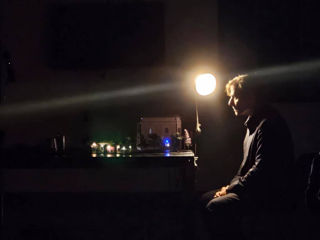La iluminación es soberbia, acompaña cada gesto del actor -a veces de espaldas, otras de frente- desde sus manos hasta la maqueta de la Mansión, desde la mirada hasta la pista con las vías por las que transitaba el tren Sarmiento.