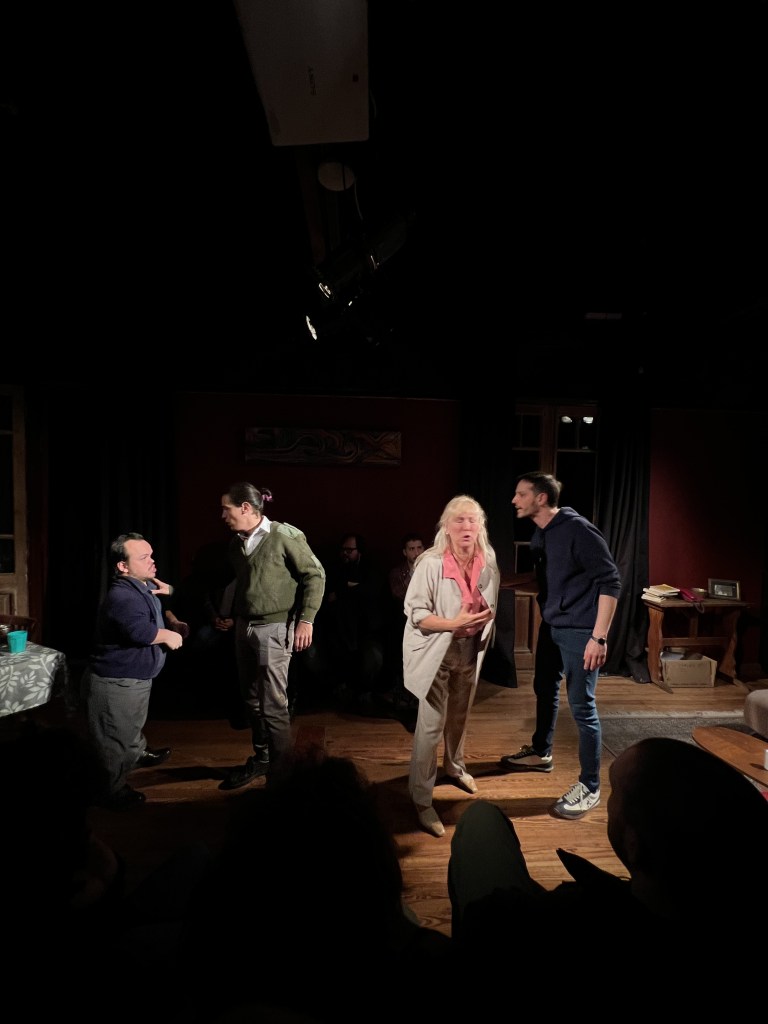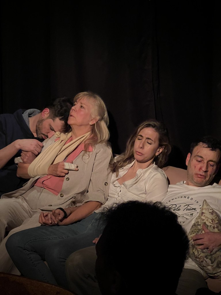 Es destacable lo parejo del nivel de actuación de cada uno de los actores, Polly Bouquet es muy acertada en su dramaturgia y además en su dirección, hace lucir a todos los personajes por igual con maestría. Cecile Caillon en el papel de madre de Juan y Cata, y abuela de sus nietos, nos hace vivir la montaña rusa emocional que la hace perder el timón, Matías Labadens, interpreta al hijo mimado que está en vías de deconstruir su estereotipo masculino y las dificultades que eso significa, Gaby Schapiro trasunta verdad en todo momento con su cuerpo y su gestualidad en el rol del tío y Susi Gianone brilla con su naturalidad, mostrando todo el peso de la responsabilidad que conlleva ser una madre argentina buscando un sostén en su madre y su hermano, un brazo donde poder relajarse sin ser juzgada.