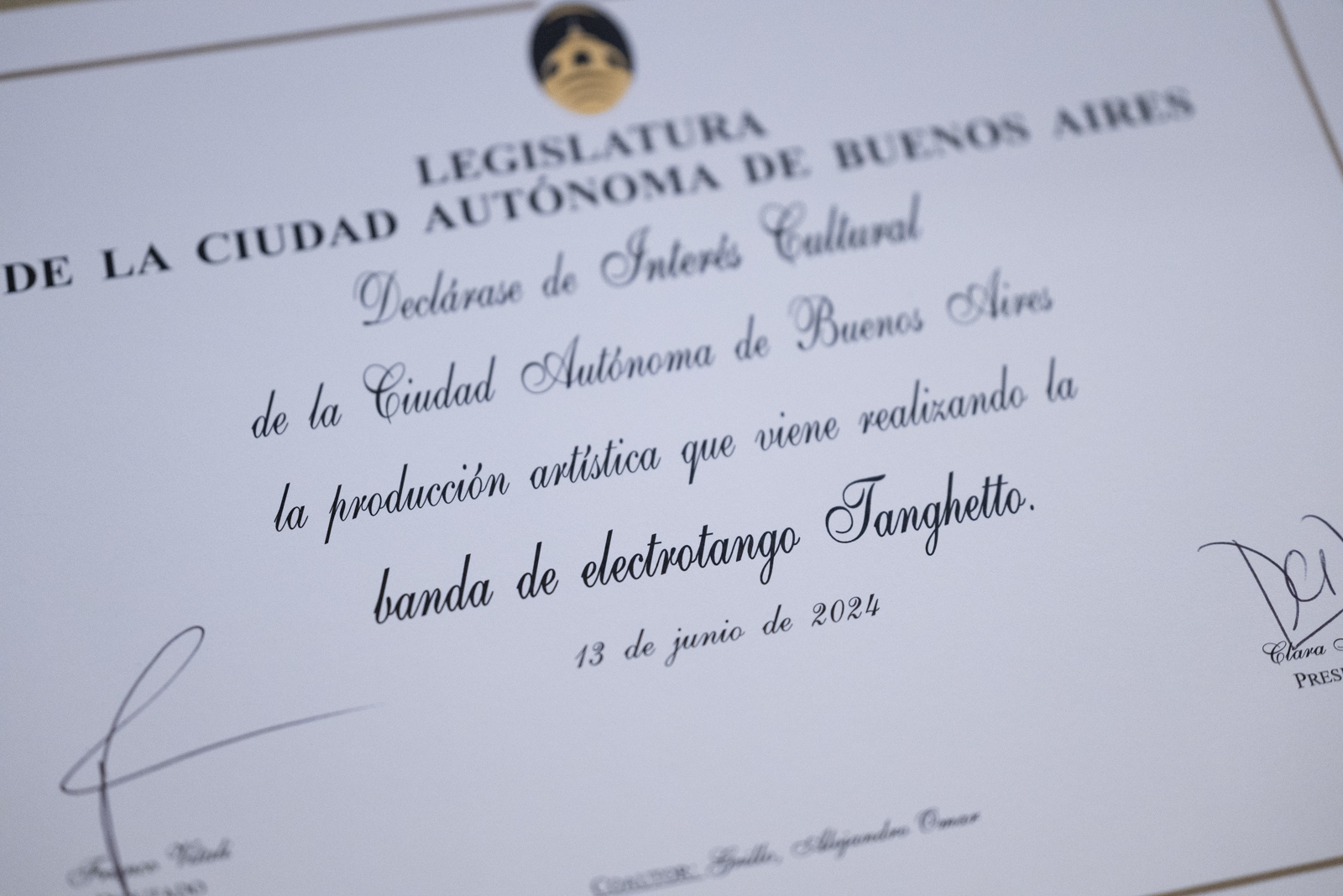 Durante la ceremonia, hubo discursos que pusieron el acento en el rol de Tanghetto en la difusión y promoción del tango electrónico. Tanghetto ha dado en llamar electrotango a su creación y esto no es una mera etiqueta, es más bien una contribución que destaca la movida que ha generado su impronta de ser pionero en fusionar géneros y la diversidad etaria de sus fans, atrayendo un público nuevo en Argentina como en el extranjero (ya han recorrido más de 300 ciudades del mundo y 35 países donde hacen sus dos o tres giras por año). Este sello del electrotango con este reconocimiento en la identidad cultural de Buenos Aires, contribuye a la preservación del tango como a su renovación, llegando a ser la formación más influyente y más innovadora que hace un puente entre el tango tradicional y el tango nuevo.