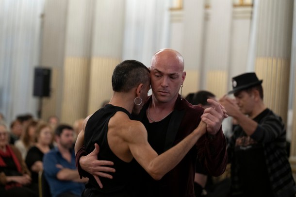 Además, presentaron el video de Transtango, como homenaje a referentes trans como Cris Miró, Lohana Berkins y Marsha P. Johnson. Este fue uno de los momentos donde quienes son referentes del tango queer y aquellos que no somos referentes, pero apoyamos la lucha por la inclusión en el tango, salimos a bailar a la pista del Salón Dorado otorgando visibilidad al bail trans-género o diría mejor, a lo Tanghetto, un verdadero transtango: un tango más allá de los géneros, plenos de alegría, orgullo, memoria y visibilidad.