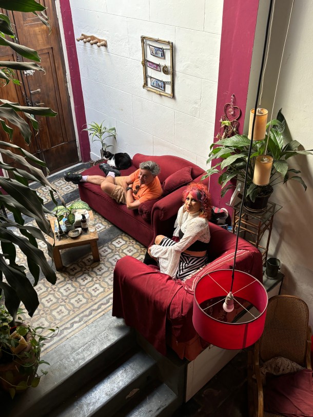 Guada trabajó para Macocos en producción, ahí la conocí. Ambos amamos el teatro, y que sea el teatro nuestra profesión y vivir de eso para poder mantener a mis hijas… Poder lograr mantenerse con el arte, eso les costaba mucho a mi familia, a mis padres y a mi tía. Amaban muchas cosas pero como amateur en esas actividades. Coqueteaban. Mi abuelo era músico y fue crítico de música. Mi tía amaba la música, trabajaba en el consulado de Francia y cantaba en el coro estable. Eran como amateurs y yo soy la primera generación que vive de lo que le gusta. Me enorgullezco de esto, y además nací en una cunita de oro con respecto a eso. Siempre fue mucho arte, yo soy melómano, tengo 20.000 CD originales. Y mi abuelo escuchaba música y me llevaba al teatro, y yo no descubrí nada, sino que empecé a ganar dinero de eso en algún momento (risas) Fue así, Sí, renatural… Un malcriado.