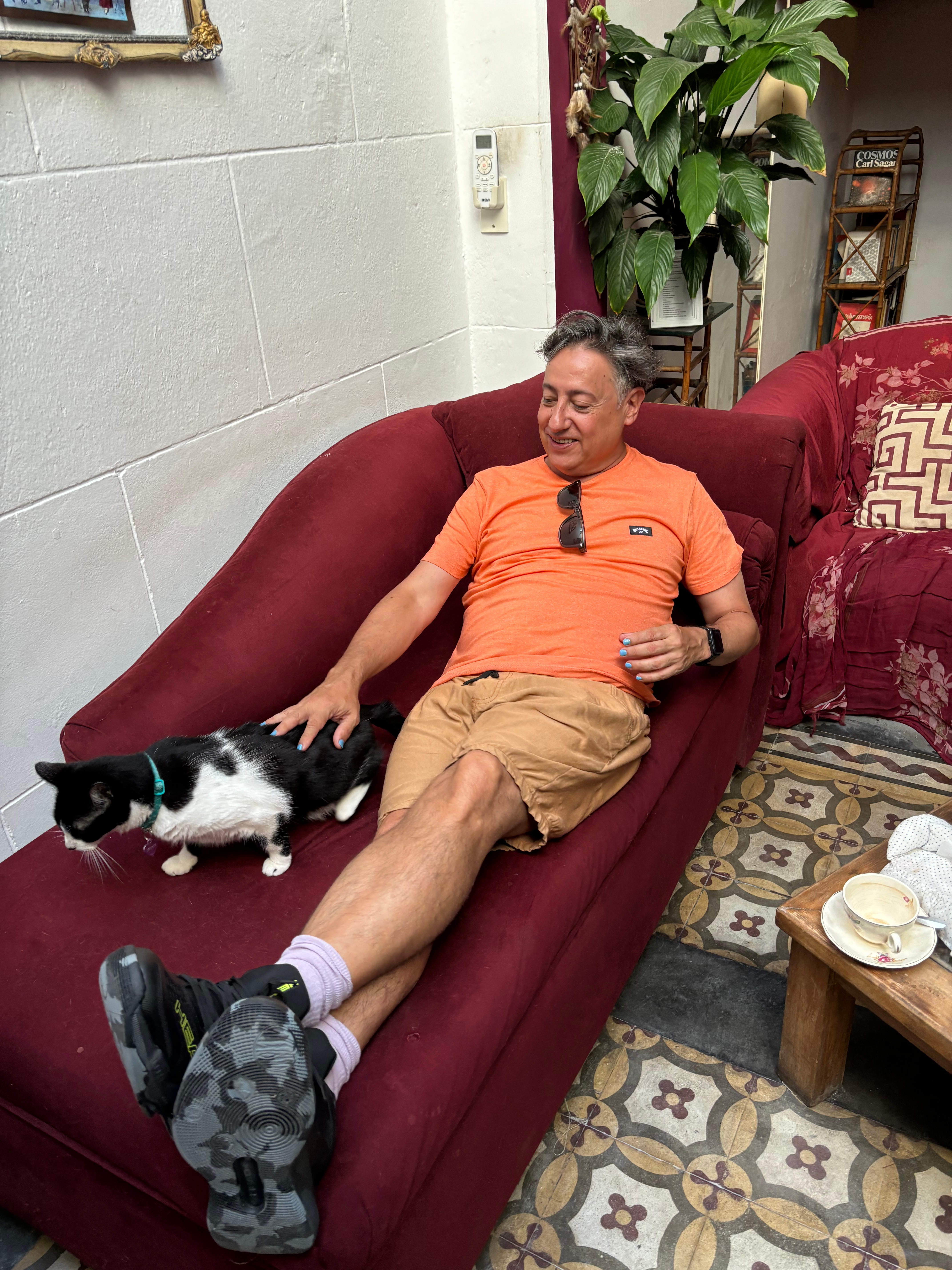(Risas) Parece que la terapia, por lo menos en nuestra ciudad, es una cosa muy cercana todo el tiempo. Empecé a hacer terapia a los 20 años y terminé de hacer terapia hace unos años, me parece que fue antes de la pandemia. Tengo bastante experiencia, me analicé sin parar con tres analistas desde los 20 años hasta los 55, y ahí dije ya está, estoy muy analizado. Haría nuevamente terapia si me surgiera una situación traumática, si sintiera que en una semana o en un mes no salgo. Y a los 20 años empecé terapia por una hiper sensibilidad… como se llama cuando llevas al cuerpo…