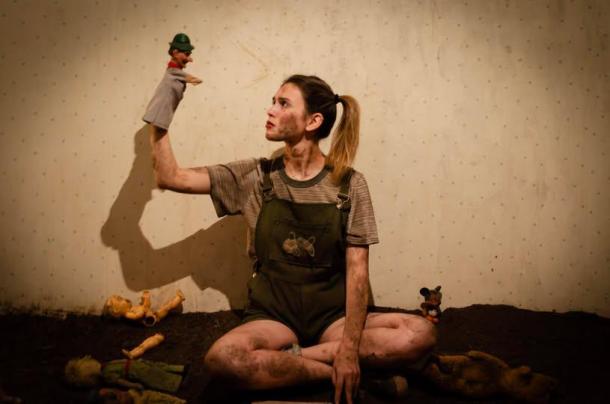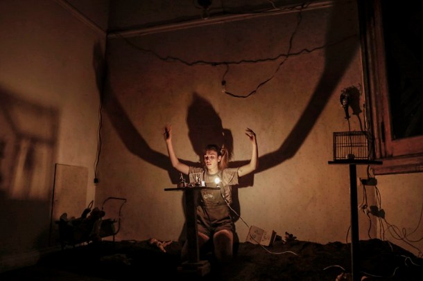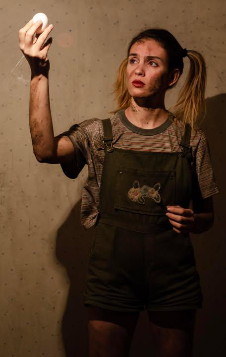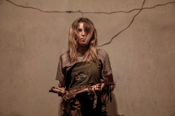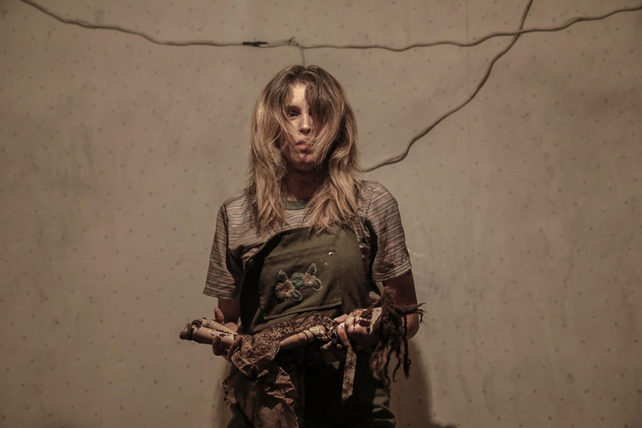 Se me anuda una contradicción y pienso en Emilio escribiendo, en Emilio leyendo tragedias griegas, en Elvira recitando texto, en Elvira transformándose de un personaje a otro, en la tierra como un símbolo, en la jaula con un huevo adentro sobre el que Elvira ensaya sus monólogos, en el miedo cuando la luz se apaga, en lo siniestro. Pienso a su vez, en Pompeyo encarnando siete personajes Shakespereanos como una obra paradigmática que abrió la posibilidad en este tiempo post-pandemia de trabajar sobre el cuerpo del actor varios personajes, varias posesiones, encarnaciones de un cuerpo habitado (Habitación Macbeth). Pienso en Lars Von Trier, en su película “Breaking the Waves” y cómo Beth dialoga con Dios y cambia su voz, es poseída por uno y por otro, por su parte sumisa que llamamos “Yo” y por un Dios “severo” que responde. Pienso en el Trauma y cómo se fragmenta la identidad: ¿Es el padre, es ella, es el padre en ella? ¿Es que su identidad ya no tiene asidero? Intuyo que la violencia en el cuerpo genera disociaciones del Yo y que este asunto està muy bien trabajado en la obra. Pienso en la severidad de los padres, en la eterna lucha de los padres contra los hijos, que ya en el “Tiestes y Atreo” que Whebi presentaba en el Cervantes se configuraba como una reiteración metafísica que todas las generaciones han de encarnar por los siglos de los siglos, bajo distintas máscaras. Pienso en la violencia como una fuerza que se intenta esconder en el sótano, como una olla a presión siempre a punto de estallar.