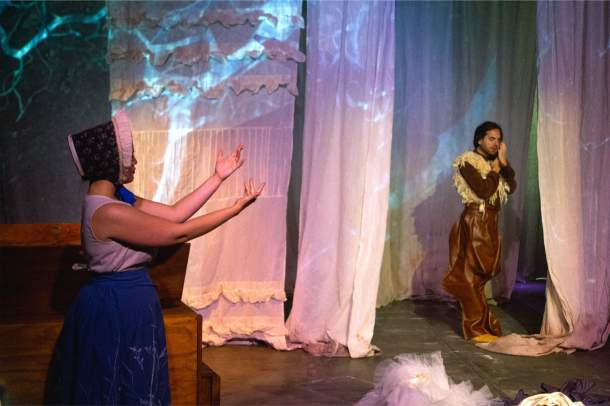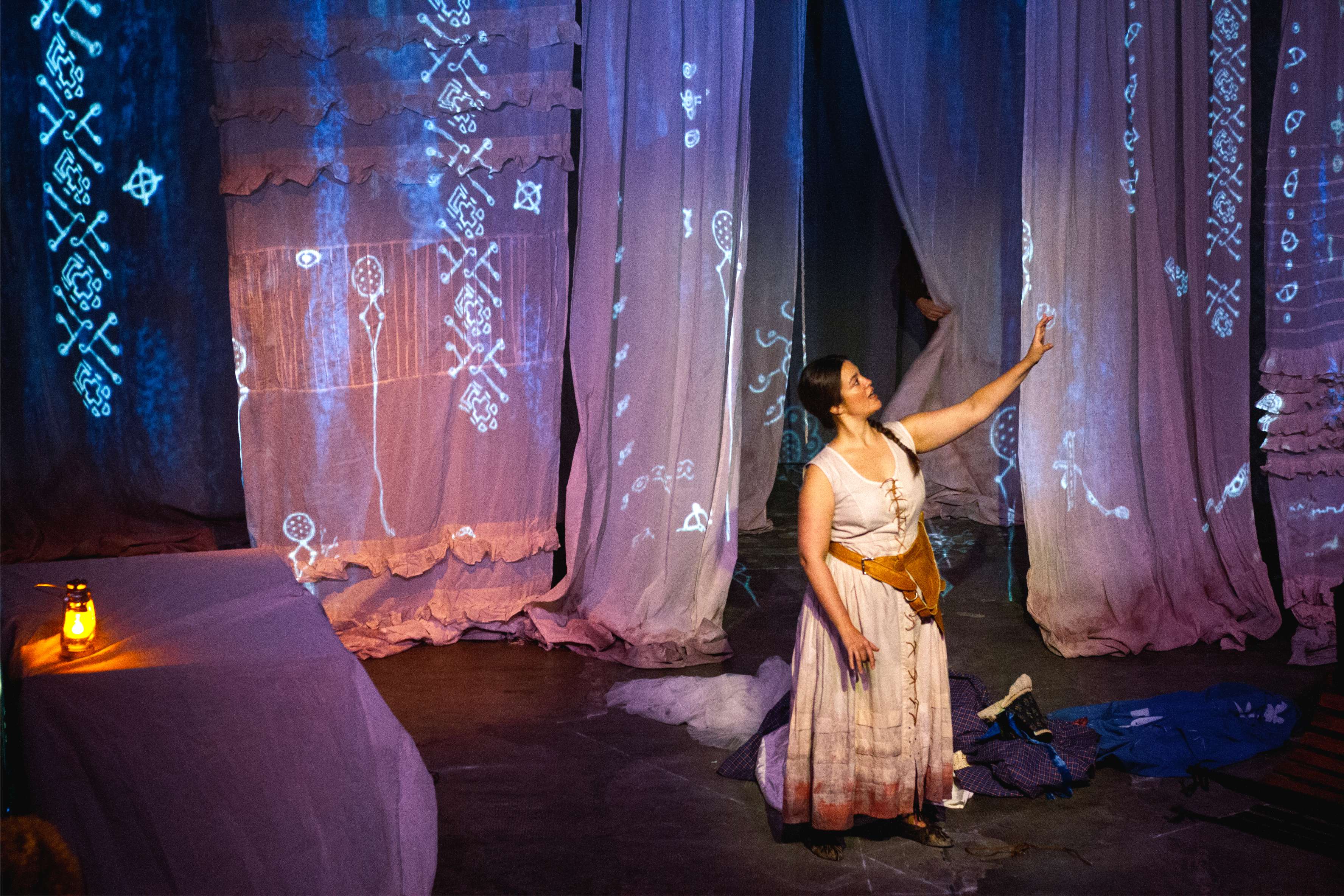 Todo cuidado. Al inicio, una invitada le da comienzo a la obra con la lectura del primer capítulo de Cabezón Cámara. Luego la China, una magistral Flor Bobadilla Oliva, narra y da existencia, con pocos objetos como marco y una iluminación que da vida. En este punto, cada detalle del telón es parte de cada fragmento del relato: pastizales de letras, juncos, estrellas. Se trata de poesía.
