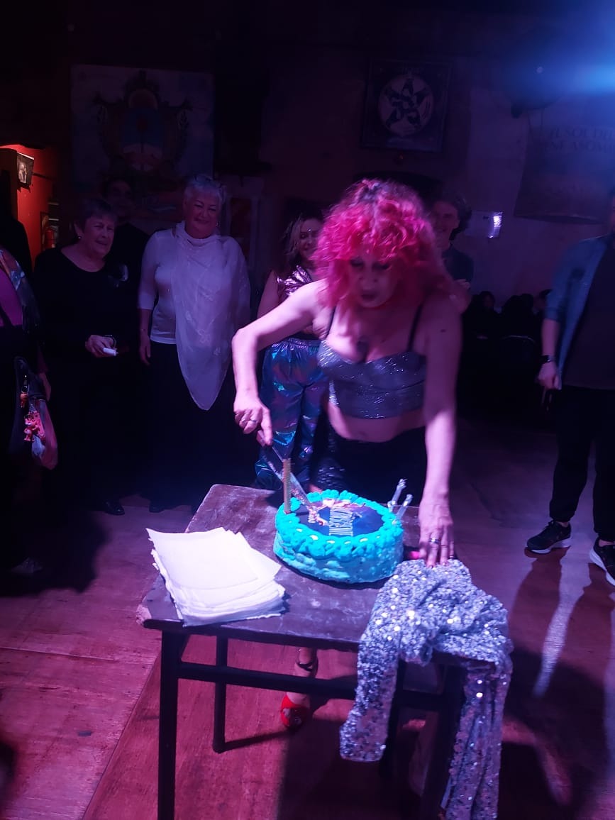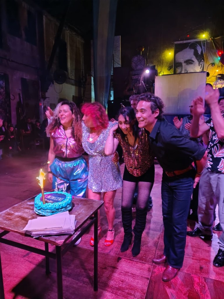 Diez años después, lo celebramos en nuestro templo habitual, La Catedral Club, que año tras año nos abre sus puertas y su alma bohemia para festejar que nuestro proyecto sigue floreciendo gracias al deseo compartido de un equipo que sostiene, semana a semana, un puente entre el arte y el psicoanálisis, entre la palabra y la escena, entre lo individual y el lazo social. Gracias a Mario Bulacio por su performance de Milva y a Axel Maatronardi por el show de Urban tango y por abrir su espacio.