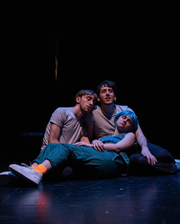 Así nos recibe El mecanismo de Alaska: con un clima festivo y una performance de baile libre que rompe la cuarta pared y desarma cualquier expectativa previa. Desde el primer minuto entendemos que acá no vamos a “mirar” teatro, sino a atravesarlo. El público deja de ser espectador pasivo para convertirse en parte de un ritual compartido junto a Los Pipis—Fede Lehmann y Mati Milanese— una dupla explosiva de grandes actores y bailarines de alto vuelo. La obra está musicalizada en vivo por Stevie Marinaro con sus propias composiciones en piano, que no acompaña: respira con la obra. En el cruce de canto, baile y actuación, la invitada es Cami Marino, una presencia magnética. Todo sucede ahí, en tiempo real, con el cuerpo como territorio y la escena como experiencia viva.
